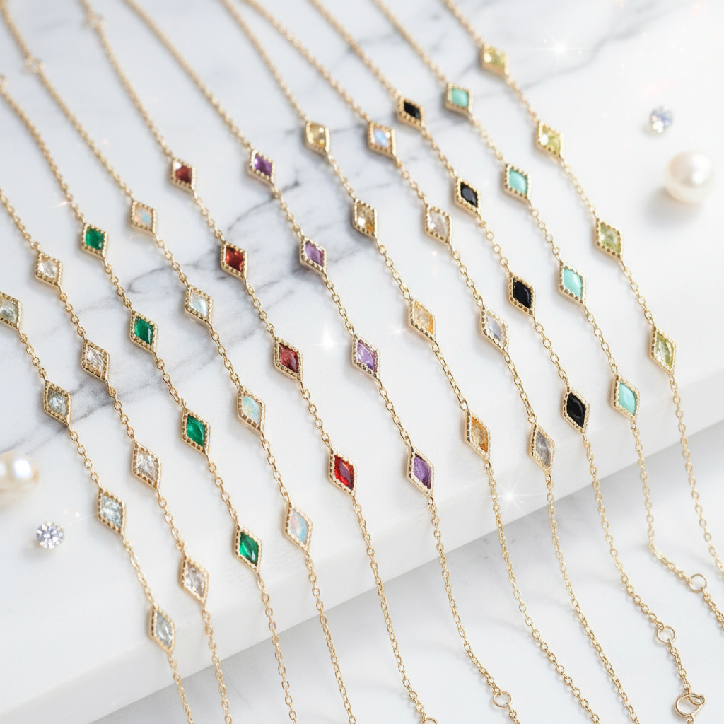 Light-luxury design, built to last. Clean geometry and precise settings meet timeless color—minimal gemstone jewelry crafted for daily wear and long-term relevance.